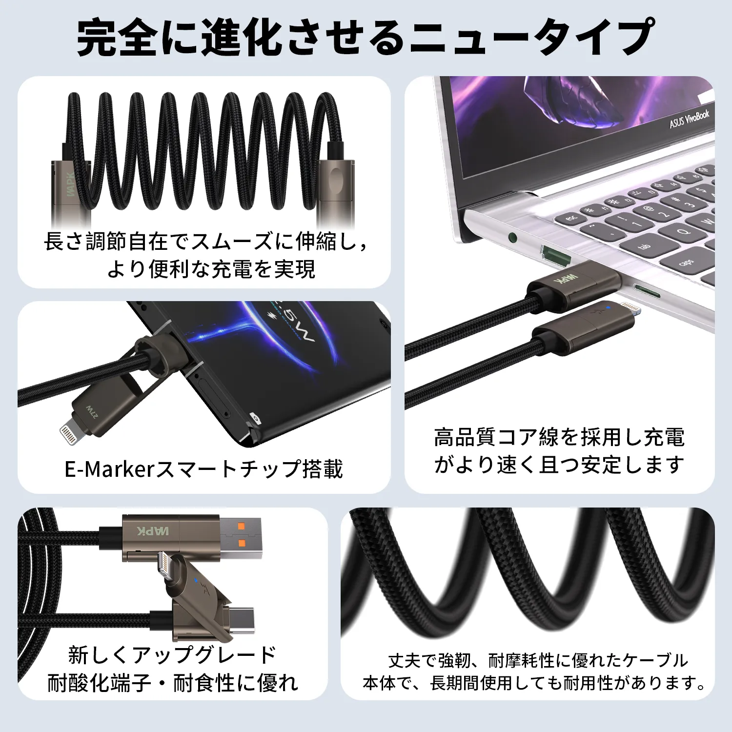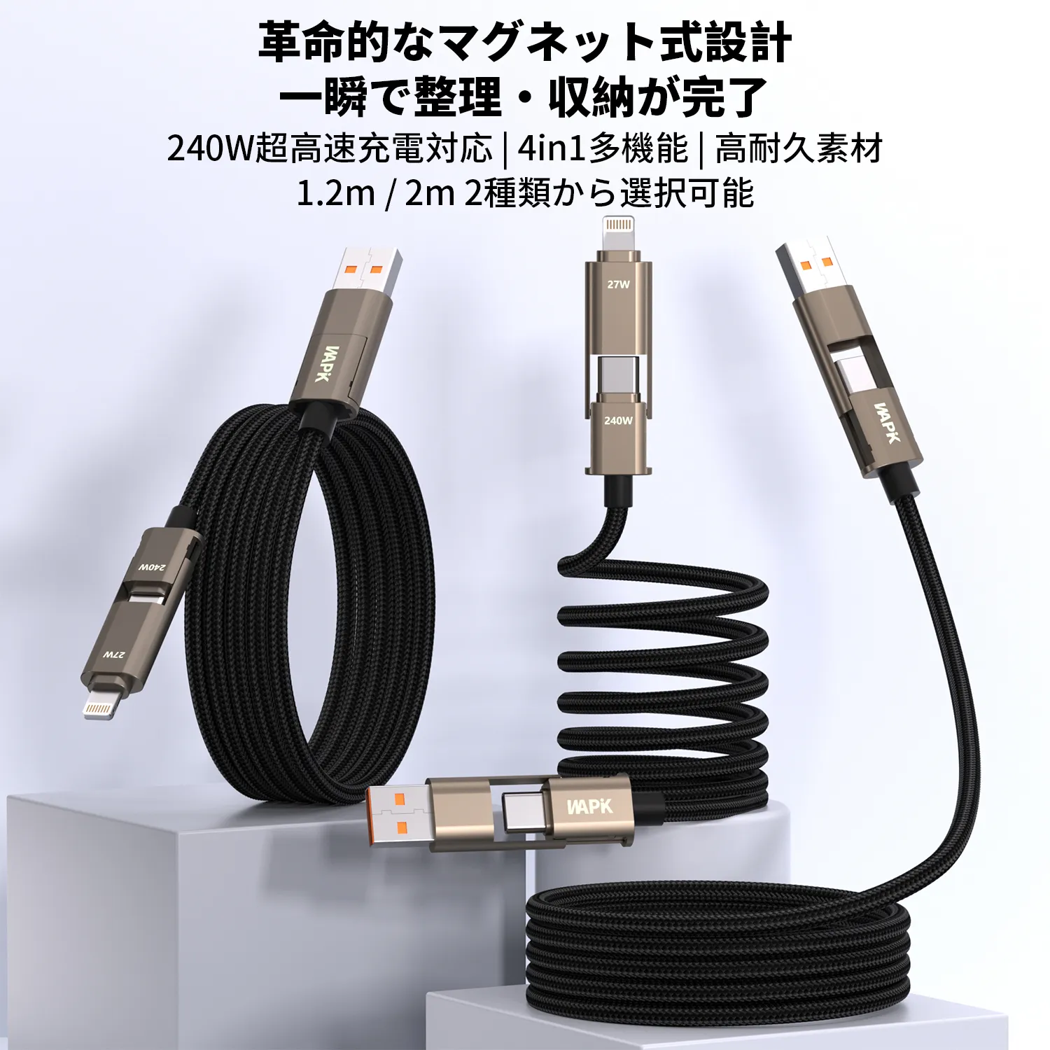 Wapik マグネット式 4in1 充電ケーブル、まさに「全能急速充電の神器」!