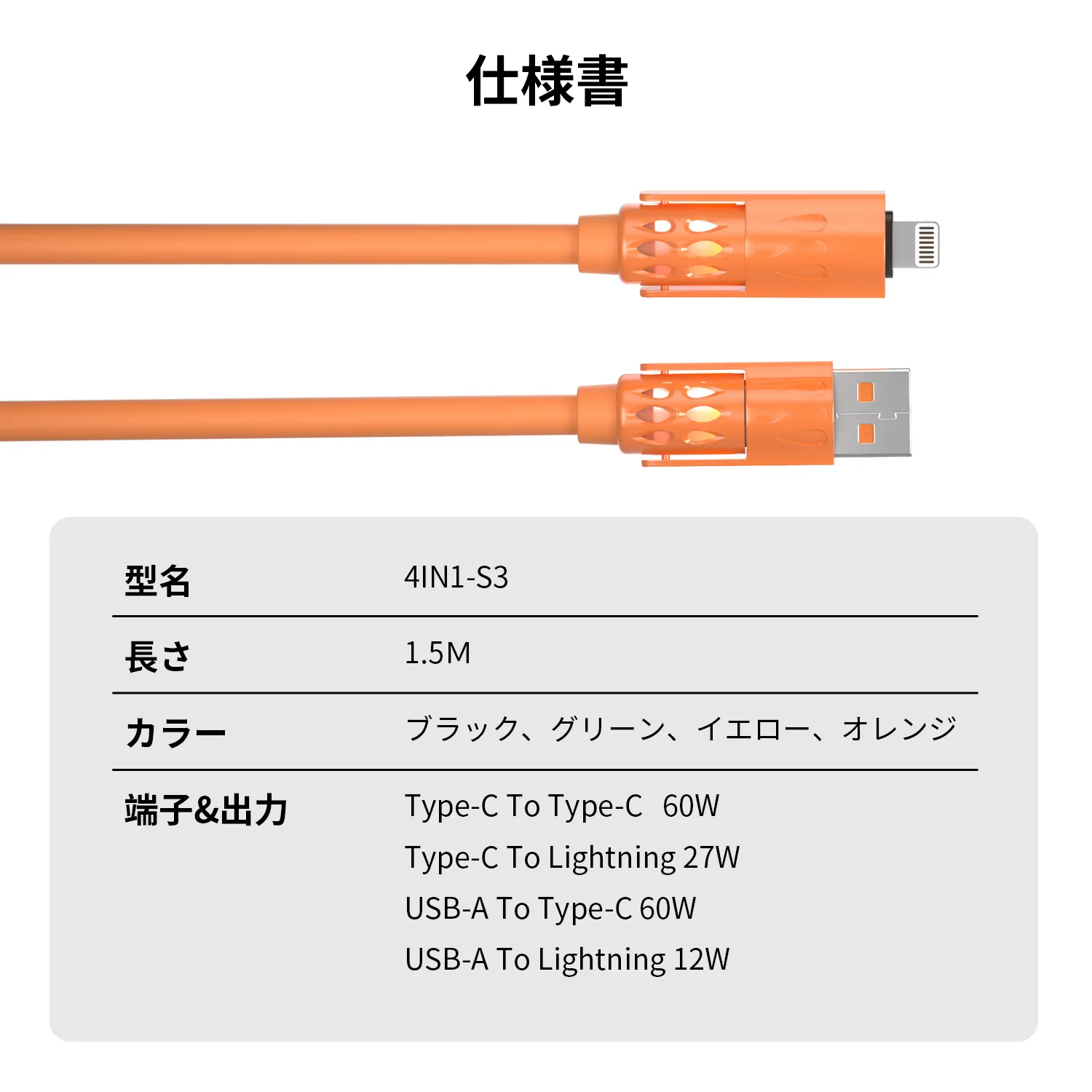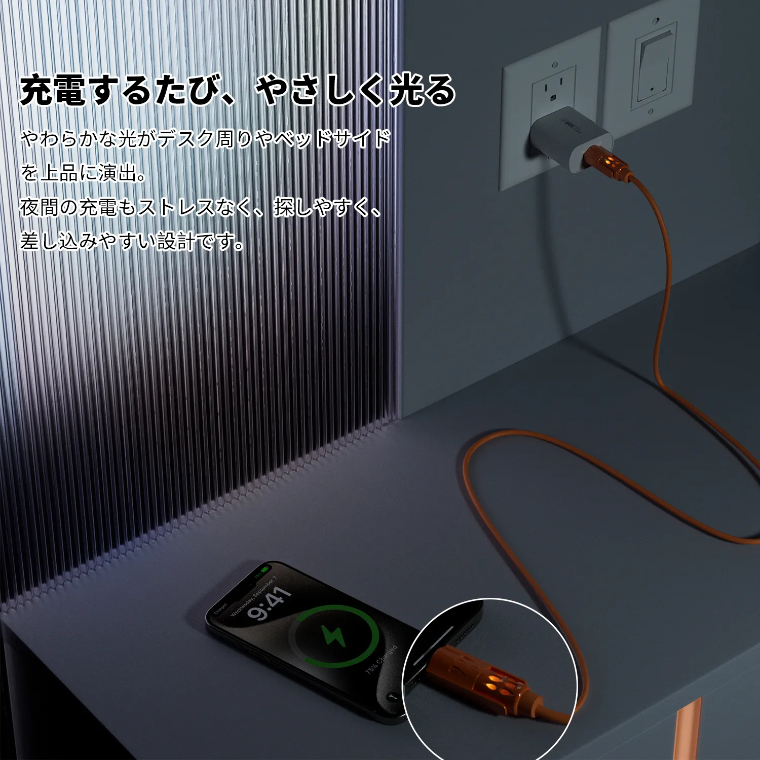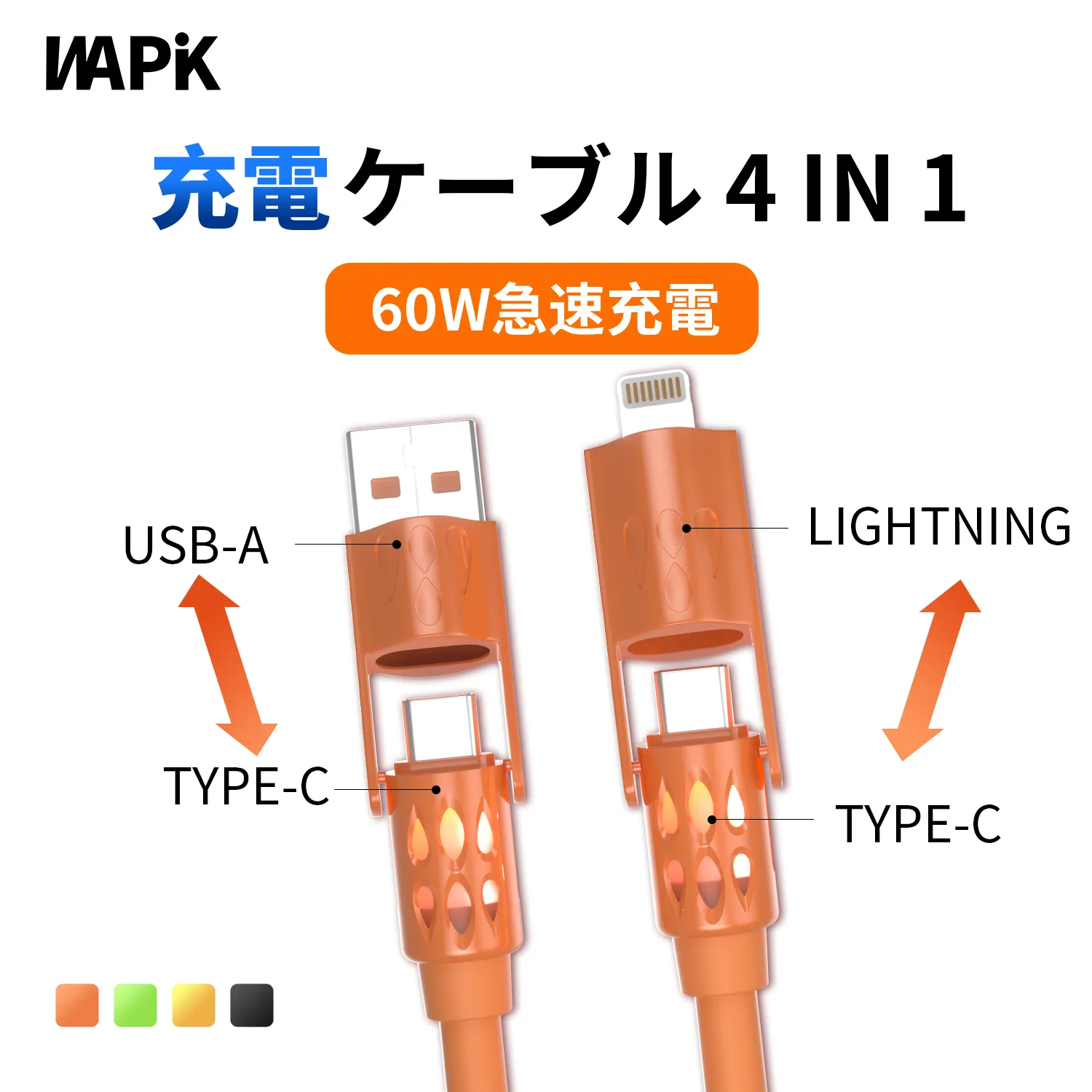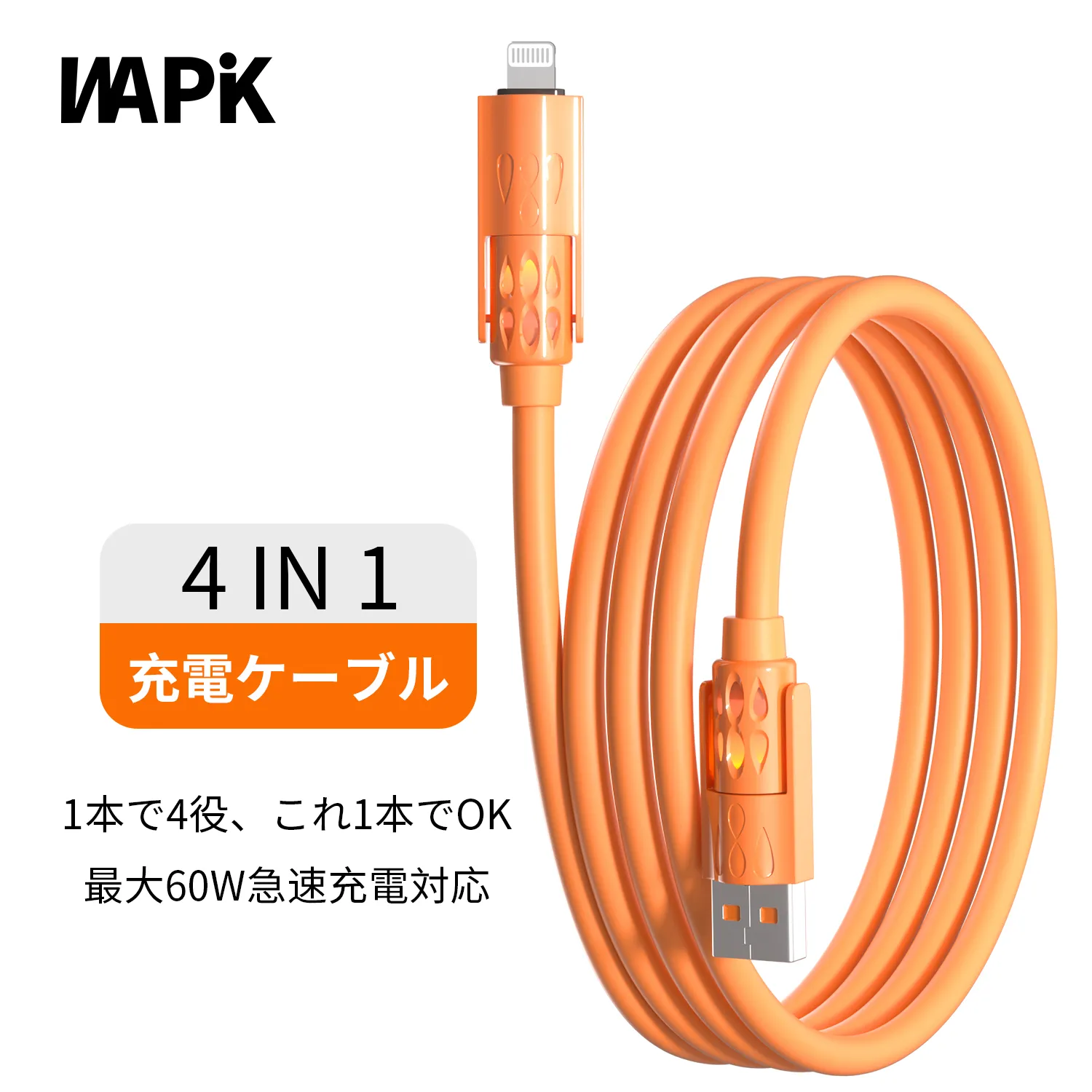 Wapik 4-in-1 フレグランス急速充電ケーブル:これ1本であらゆる用途に対応、外出先でも柔らかな光を放ちます