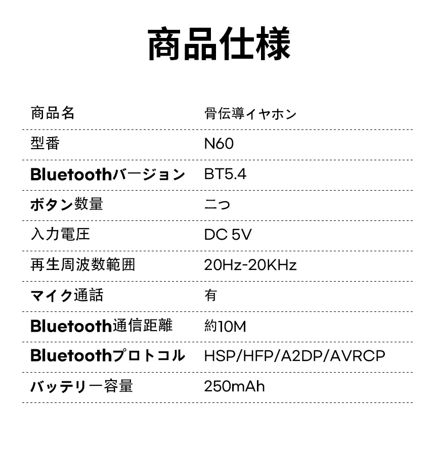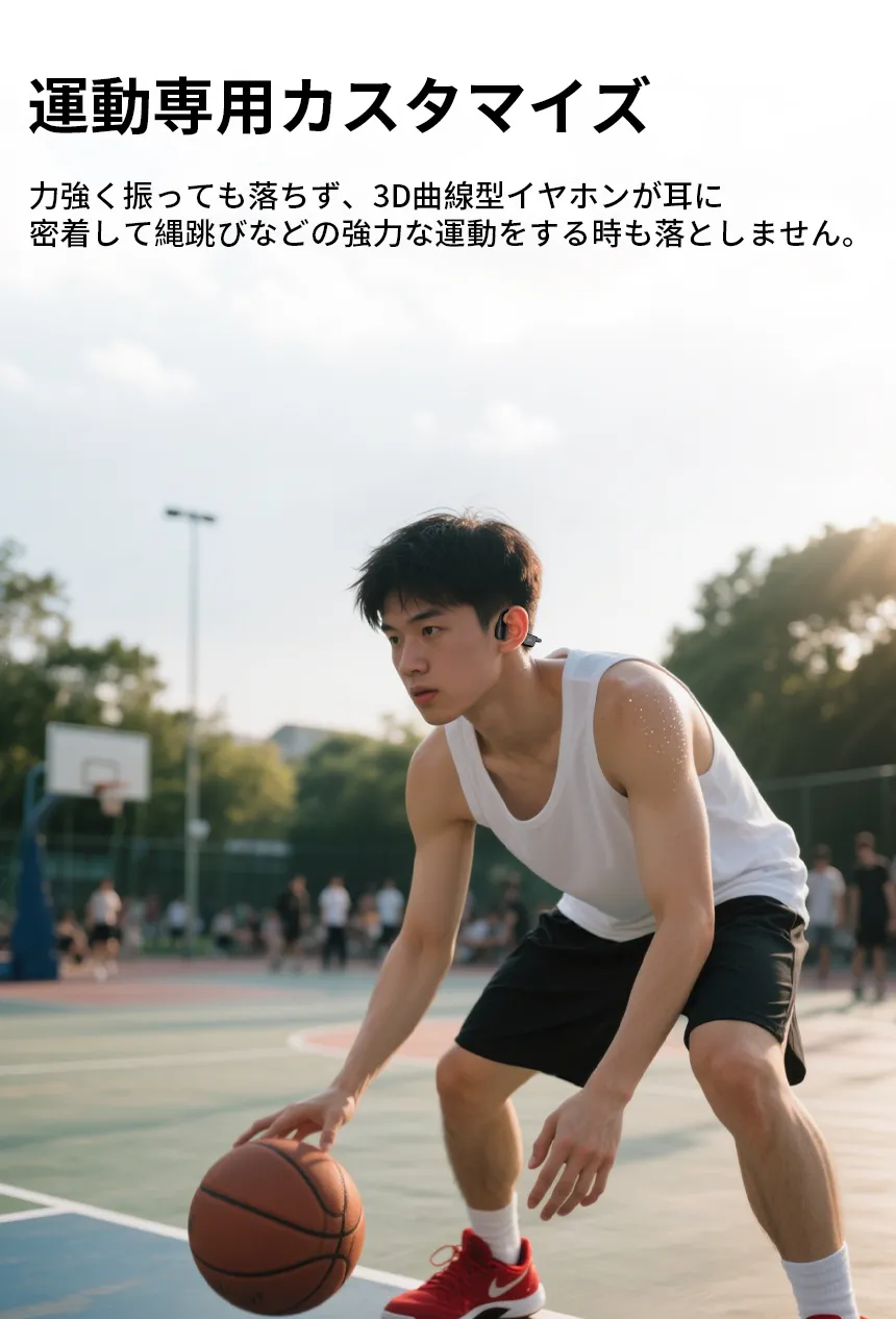 ランニング中にイヤホンが落ちてしまうことはありませんか?汗をかくと接続が切れてしまうことはありませんか?スポーツ向けに特別に設計されたN60 スポーツ Bluetooth イヤホンは、フィット感から音質まで、あらゆる悩みを解決します。耳のカーブにフィットするシリコン製のイヤーフックデザインは、スプリント、スクワットジャンプ、ストレッチなど、どんな運動中でもしっかりとホールドします。長時間装着してもずれにくく、イヤホンに邪魔されることなく動きに集中できます。