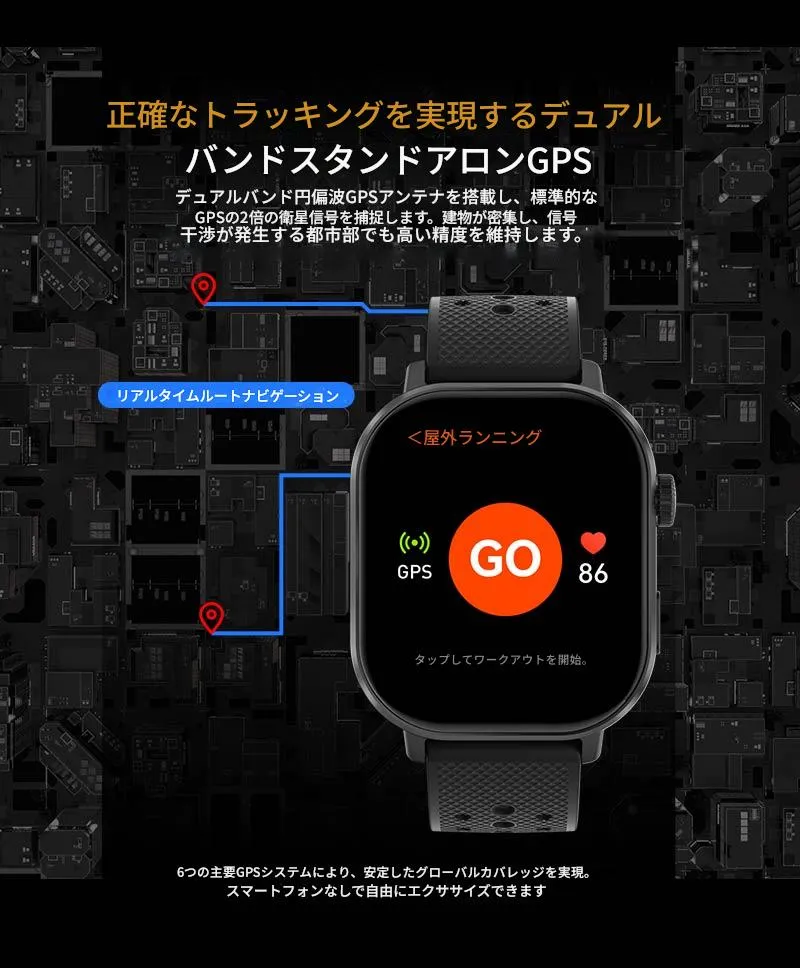 時間を確認するために手を上げる必要はありません。常時表示のディスプレイで、一目で時間を確認できます。さらに、8種類のスポーツを自動検出し、170種類のワークアウトモードを搭載。エクササイズにも最適です。ウォーキング、ランニング、球技、水泳など、どんなスポーツでも、簡単に運動を開始し、正確なデータ記録で健康維持をサポートします。 ST60 を使用すると、生活と健康の両方を管理できます。