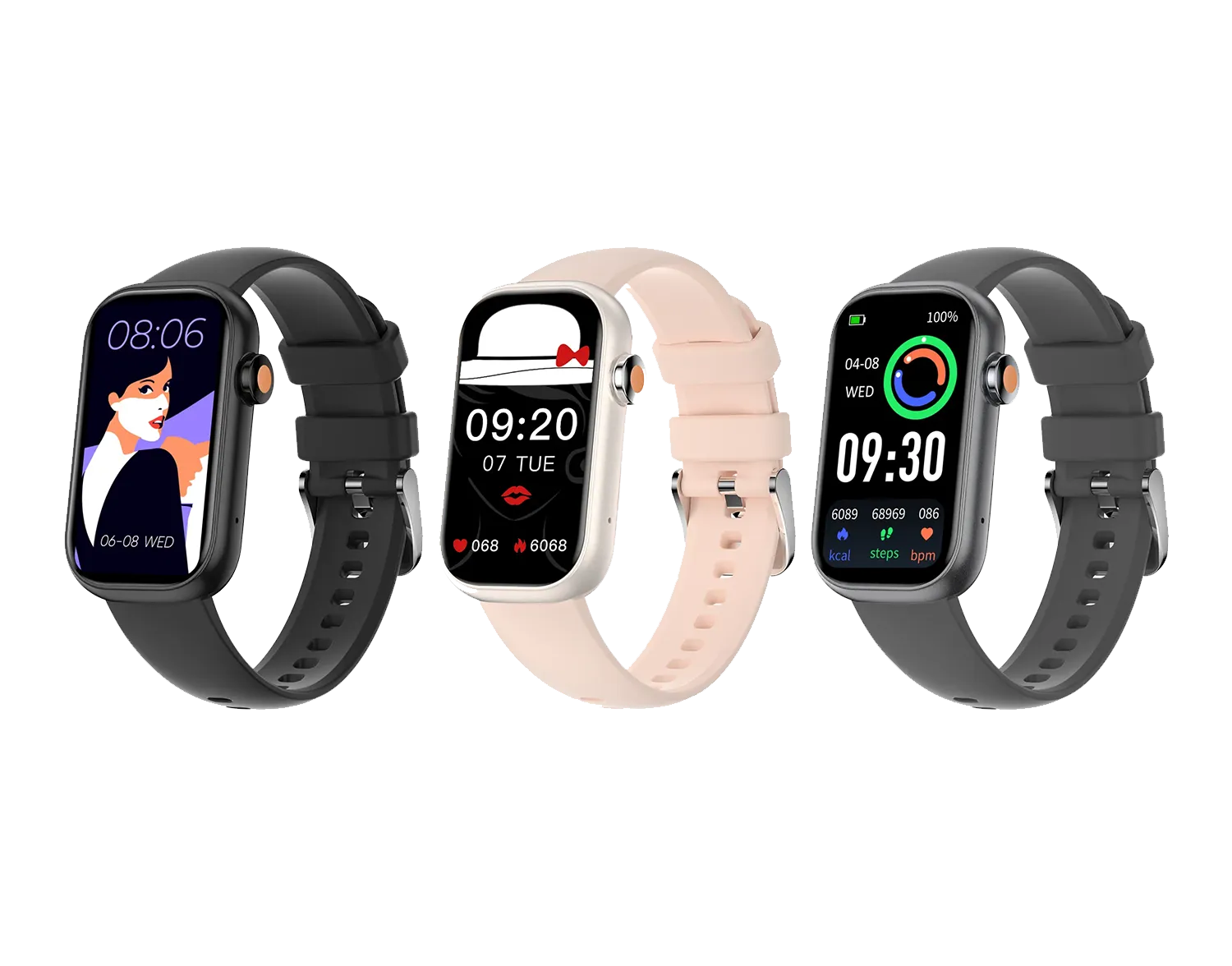 バンド種類:シリコンバンド、レザーバンド、金属バンド(別売り)